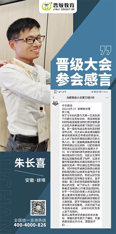 晋级大会专门针对现阶段的热点问题,形势政策和校区办学难点进行分析讲解,帮助受疫情防控,双减政策,课后延时服务的校区,和想要踏入托管行业的投资人指明未来托管的前行的方向,更是帮助现在还未实现校区满员的校长实现校区装满这个初级目标。