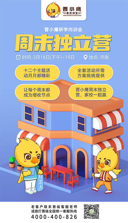 晋小鹰周末独立营,旨在助力机构发展,增加家校粘合度,巩固生源稳定性,增进学生对自然和社会的认识,培养其社会责任感和实践能力。
