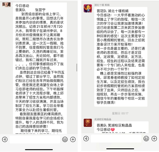 30日下午内训会圆满结束,大家还意犹未尽,学员们收获满满,每一个人对晋小鹰假期托管班都有了更加深入的了解,这也是魅派展开本次培训的意义所在。