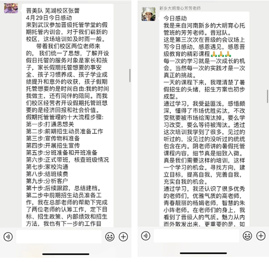 现场学员们积极参与,认真聆听,细心做笔记,每个内容重点满满,不仅丰富了学员们对假期托管的认识和理解,又提高了学员们的招生方法及技能。