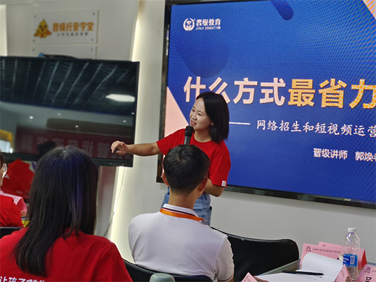 晚上晋级总部郭焕老师带来网络招生和短视频运营专场,校长们越听越来劲,在这个流量的信息的时代,如果能抓住流量密码,学会直播方法,不仅省时省力,并且能够让陌生有需求的家长在短时间内了解你的校区,以及你的课程,从而加快信任感,促进成交。