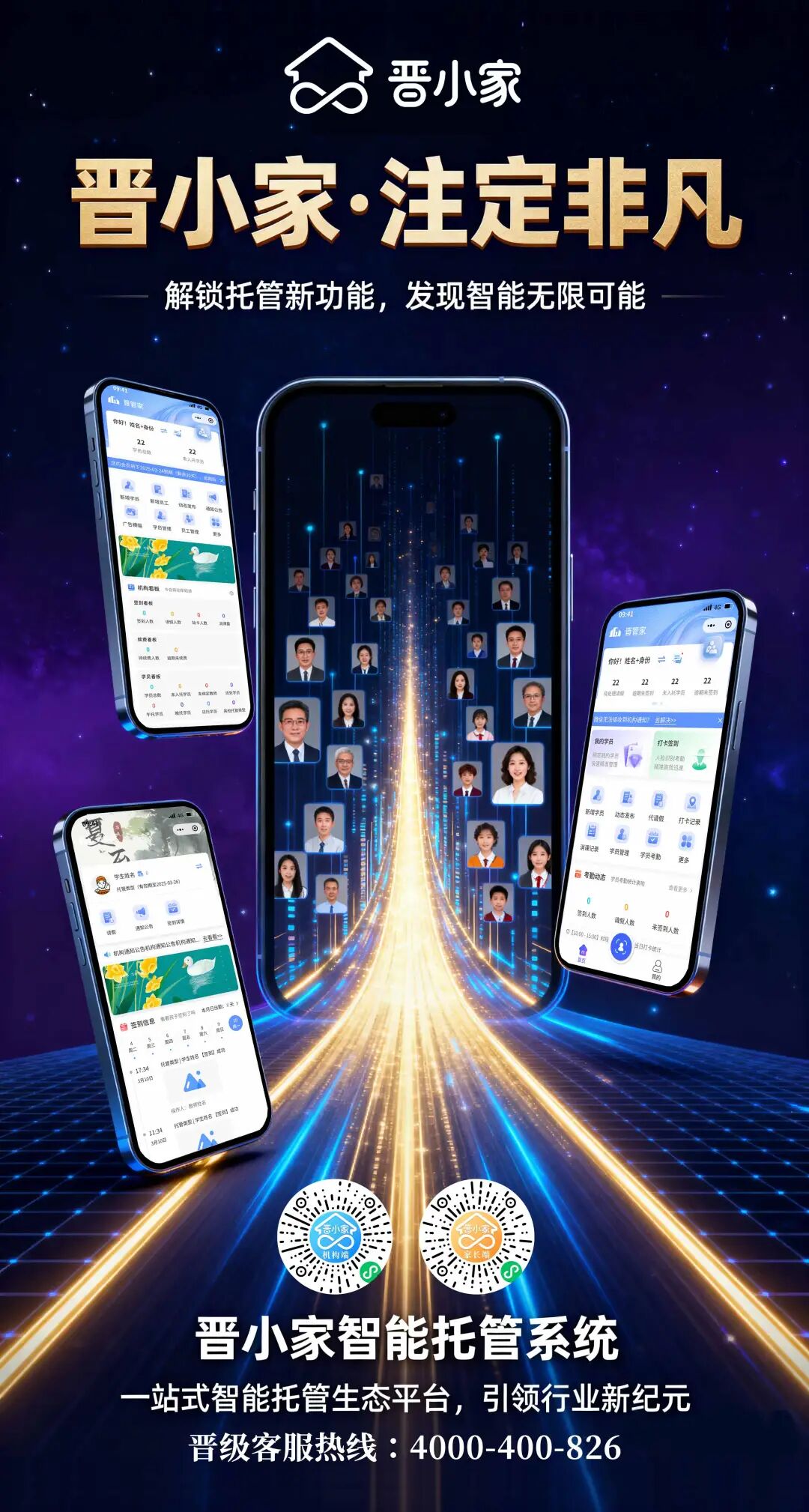 晋级集团重磅推出——晋小家,专为中小托管机构量身打造,以“轻装上阵、聚焦核心、智能高效”为理念,让托管管理回归简单!