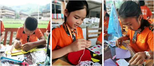 在大家吃完特色午餐,进行修整之后,进行了我们下午的课程:自控力的训练,在学习之后,我们进行穿针引线这项小游戏进行实操,这个小游戏可也是自控力的一种体现呢,我们请到了瑶族的阿婆为小学员们讲解当地特色刺绣,瑶族阿婆今年75岁,一辈子没有走出过大山,从12岁开始绣花,整整绣了60多年,阿婆75岁仍然可以一次性穿针成功,小学员们说,老师,我终于理解了自控力,那是需要坚持加方法加技巧的。